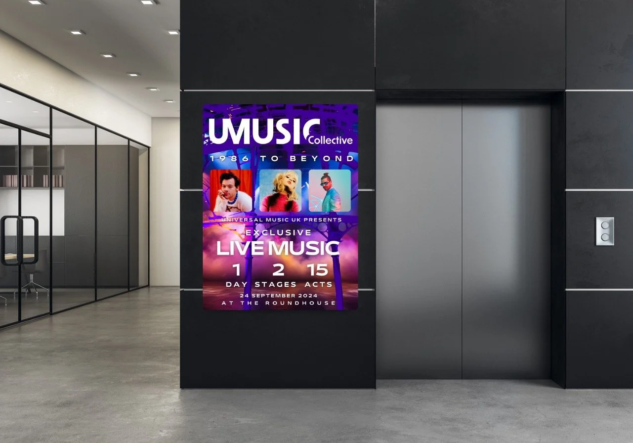This student project gives Universal Music event “UMusic Autumn” an entirely rebranded look. UMusic Collective 1986 to Beyond is an event built on the history of the famous London Roundhouse venue. It reflects the vibrancy, excitement, and energy of the event space and the company. This campaign is meant to circulate within Universal Music’s employee network.